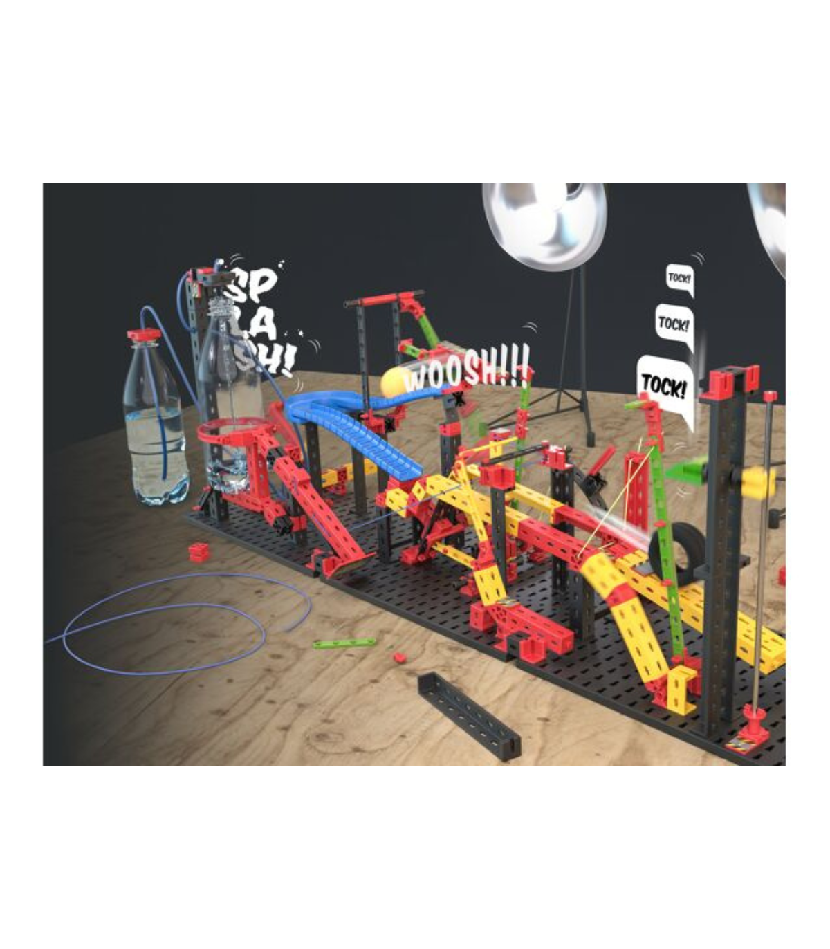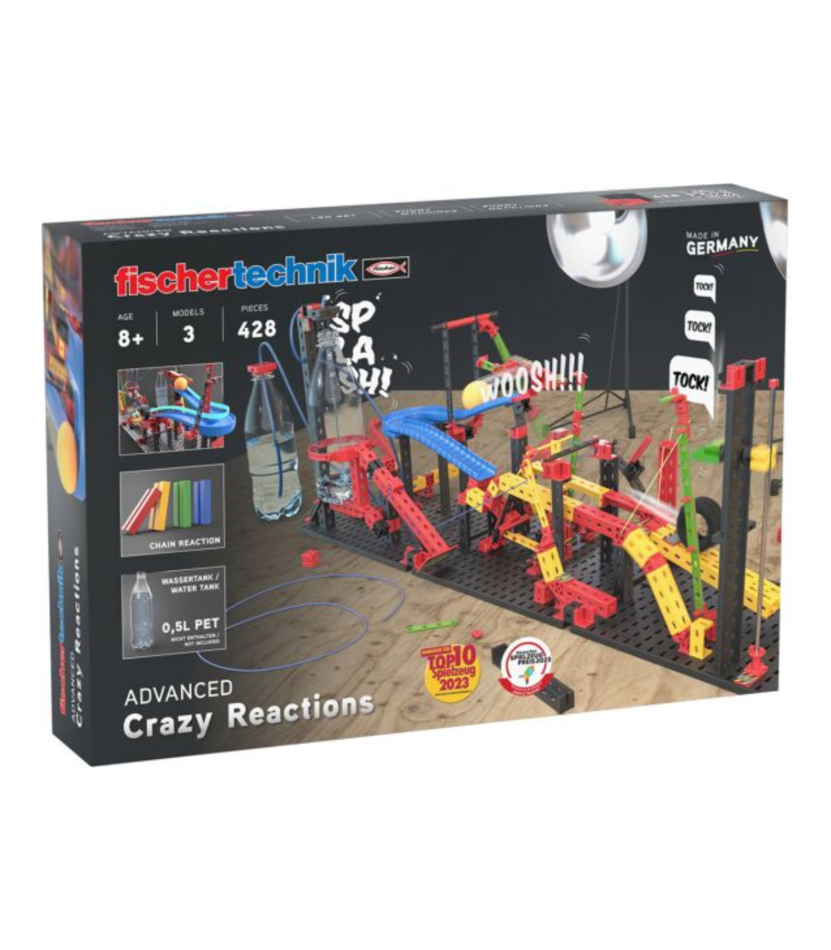 ¡Ahora se llena de acción! Con el juego de construcción Reacciones locas, podrás construir tres reacciones en cadena diferentes con emocionantes efectos sorpresa. Da el pistoletazo de salida y descubre jugando la función del cable de tracción, la palanca y el engranaje. ¿No es suficiente? Las reacciones en cadena pueden ampliarse maravillosamente con objetos cotidianos y fomentan la construcción creativa.
