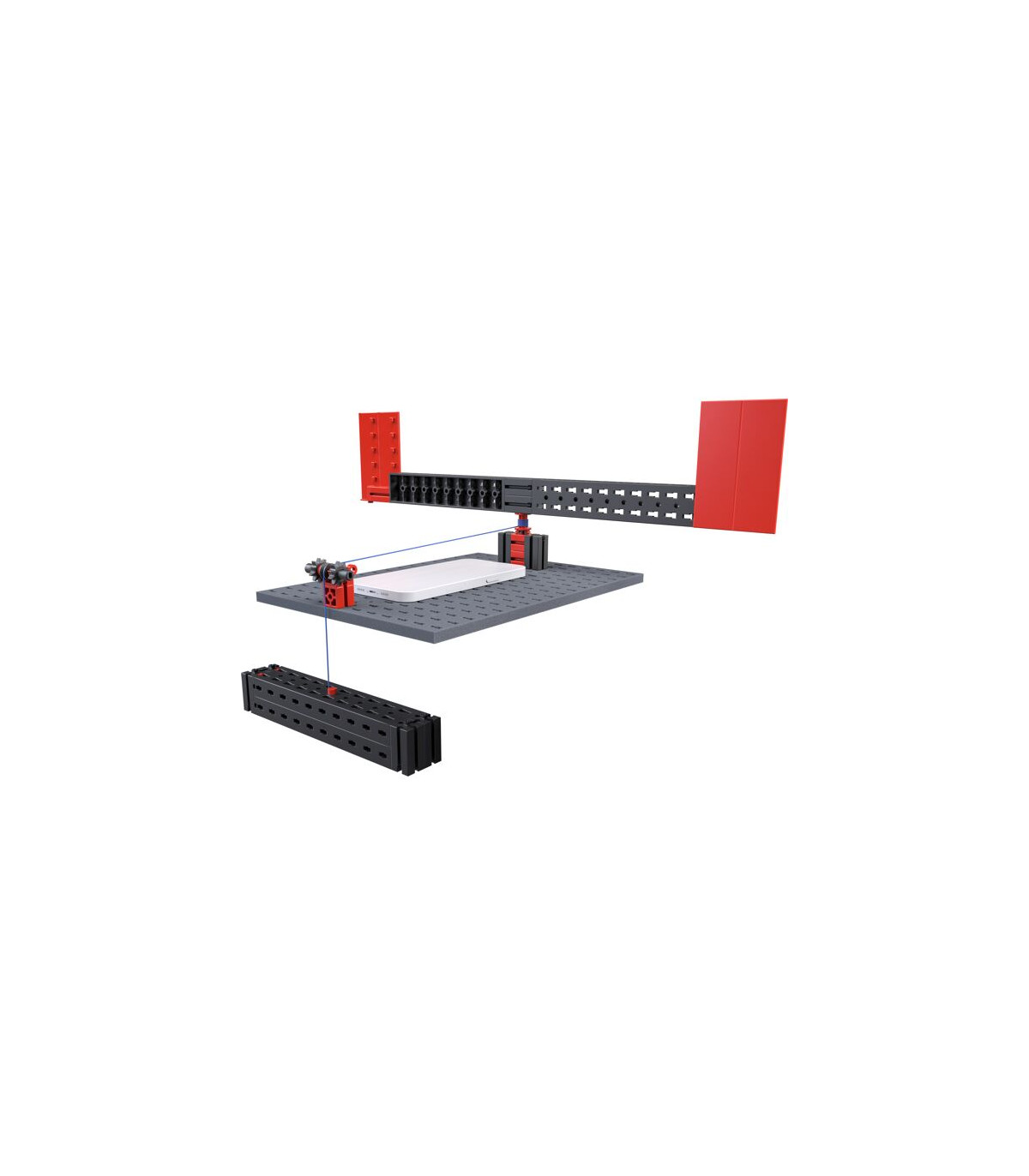 El mundo del diseño de ingeniería y el análisis de datos combinados constituyen una experiencia de aprendizaje práctica e interactiva en el aula. STEM Smart Physics contiene diez apasionantes modelos que permiten realizar diversos experimentos de física. Desde cuerpos acelerados y oscilaciones armónicas hasta la propagación y el espectro del sonido, a los alumnos les esperan emocionantes tareas para probar hipótesis y explorar las leyes físicas de forma práctica. La aplicación Phyphox lee los datos recogidos por los smartphones integrados en los modelos y permite un análisis inmediato y detallado de los resultados de las mediciones. Los alumnos adquieren una comprensión profunda de los principios físicos mediante la combinación de teoría y práctica, al tiempo que fomentan su capacidad de resolución de problemas y su pensamiento analítico. El material didáctico complementario, especial para clases regulares, completa el concepto y permite su uso directo en el aula.