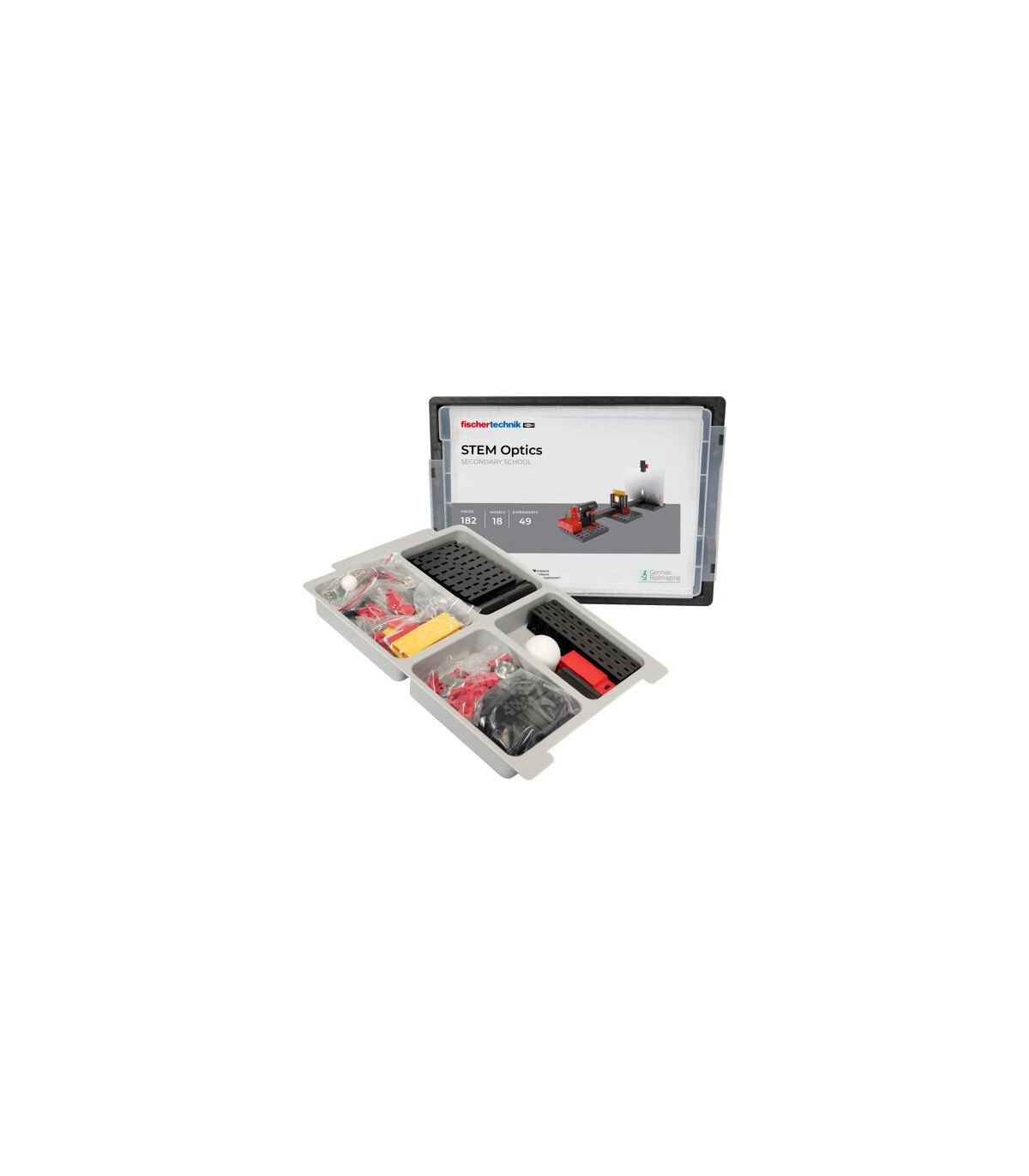 Especialmente diseñado para satisfacer los exigentes requisitos de la enseñanza general, este juego ofrece una completa colección de 18 modelos para ayudar a los alumnos a explorar los fundamentos de la óptica de forma divertida e interactiva. Partiendo de conceptos básicos como la lupa y las trayectorias de los rayos de diferentes lentes, el juego conduce a los alumnos a temas más complejos como los telescopios, los espectros, los microscopios o los proyectores. Cada modelo se diseña cuidadosamente y se monta rápidamente utilizando los consistentes soportes para lentes junto con el banco óptico, lo que garantiza un flujo fluido en las lecciones basadas en actividades. Los alumnos tienen así la oportunidad de experimentar, observar y explorar activamente. El material didáctico incluido apoya el viaje de aprendizaje de los alumnos y proporciona instrucciones detalladas, explicaciones y tareas que hacen del aprendizaje una experiencia holística.