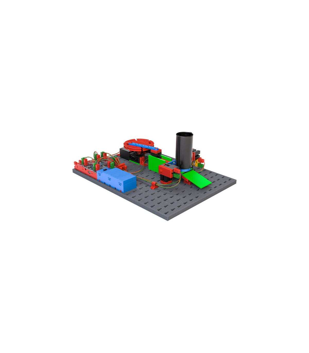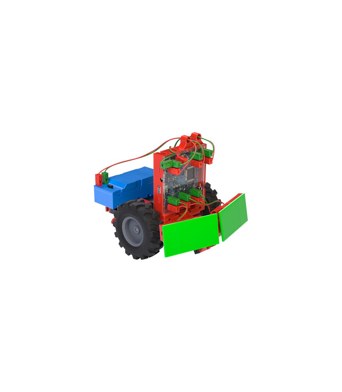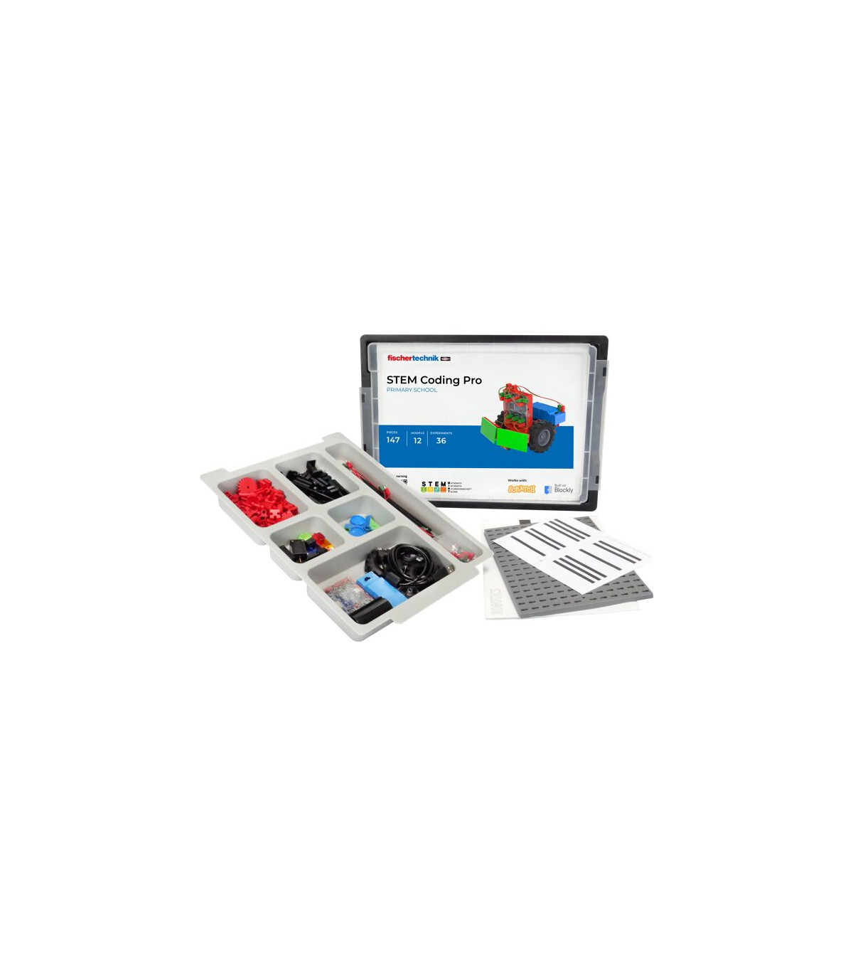 ¿Cómo funciona un semáforo? ¿Cómo aprender a programar un sencillo robot de pintura? Utilizando doce modelos cercanos a la vida cotidiana y tareas que se construyen unas sobre otras, los niños aprenden paso a paso conocimientos básicos de informática. Con la ayuda de un controlador fácil de usar, una serie de prácticos sensores y actuadores, una intuitiva aplicación Scratch y coloridos bloques de construcción fischertechnik, los alumnos de primaria resuelven tareas que conocen de su propio mundo. A través del enfoque de aprendizaje lúdico y orientado a la acción, los niños también adquieren importantes habilidades sociales y emocionales.