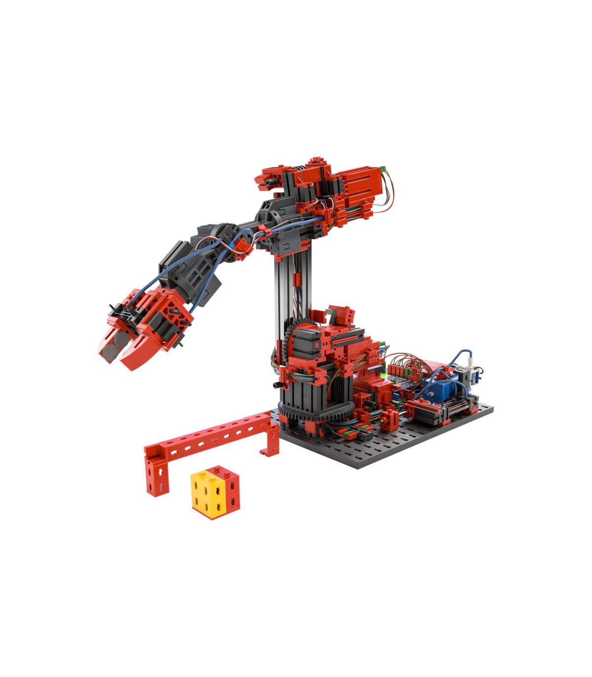 El robot de 6 ejes de fischertechnik permite a los estudiantes familiarizarse intensamente con la robótica industrial y prepararse de forma práctica para las exigencias del mundo laboral moderno. El realista robot de seis ejes se suministra completamente montado. Puede equiparse tanto con una pinza de succión por vacío como con una pinza de agarre y puede transformarse de forma rápida y sencilla.